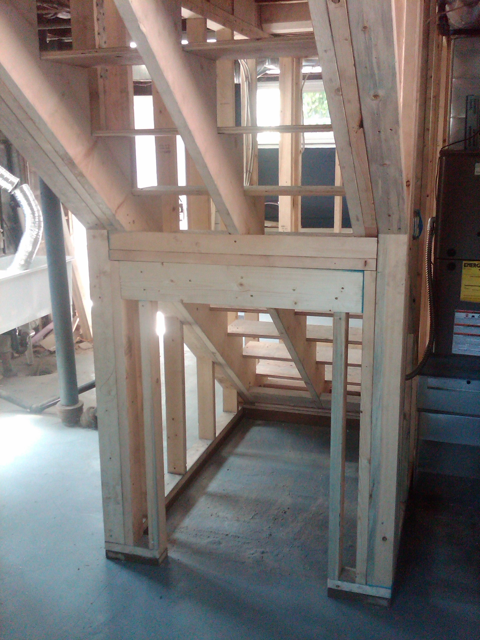 Reframing or building new stairs requires a permit because treads and risers need to measure within a certain range, and there are codes regarding head height and handrails.